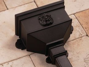 Cast Iron Effect Rainwater Hopper with Lion motif, for use with 65mm Square and 68mm Round Cast Effect Downpipes only. Available in two sizes Small: Overall Width 386mm ~ Width of opening 318mm Height...
