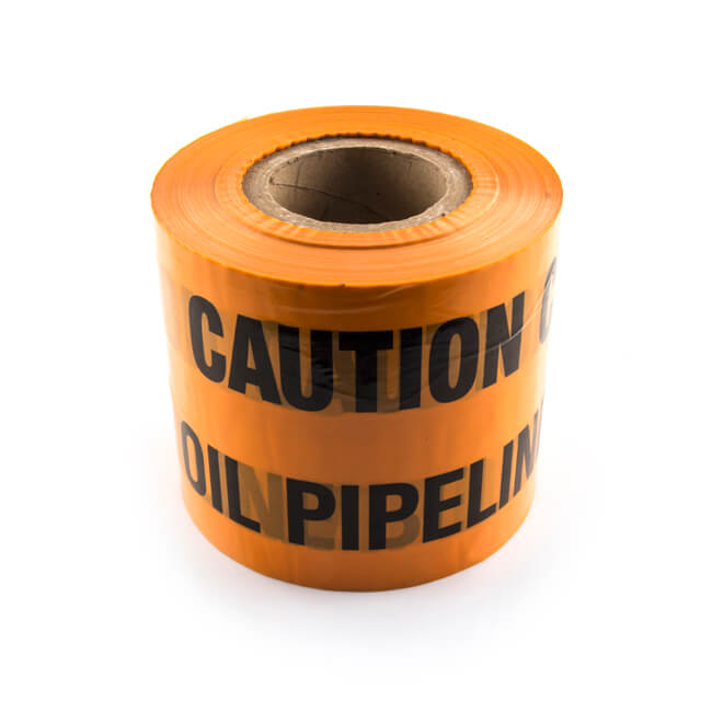 50 micron polyethylene, non-traceable, underground marker tape printed with warning message for indicating presence of Oil Pipeline. Width 150mm Length 365m
